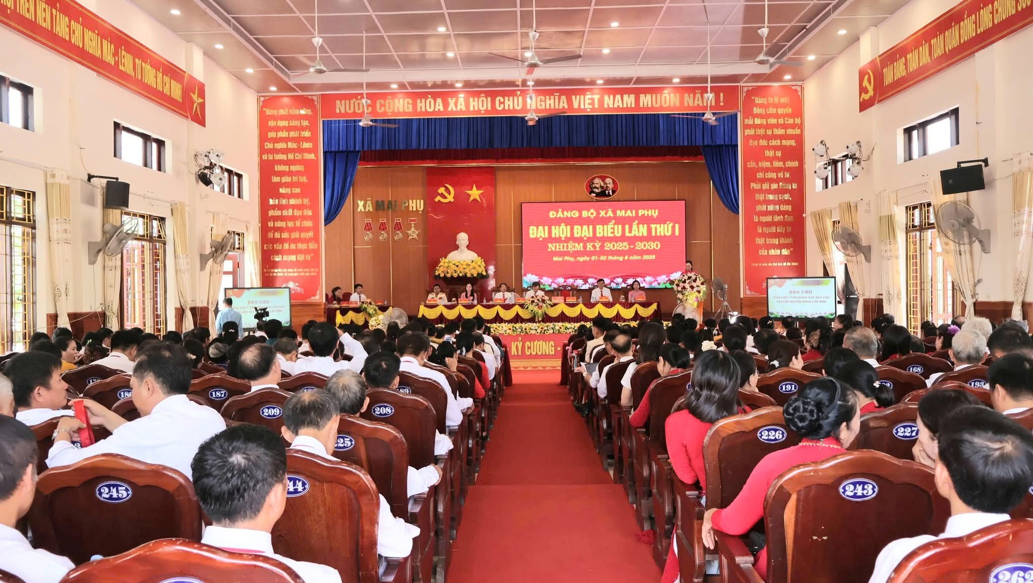 Chiều ngày 1/8/2025, Đại hội Đại biểu Đảng bộ xã Mai Phụ (Hà Tĩnh) lần thứ I, nhiệm kỳ 2025 – 2030 đã chính thức khai mạc. Sự kiện thu hút sự tham gia của 232 đại biểu, đại diện cho 1.478 đảng viên trong toàn Đảng bộ xã, cùng với sự hiện diện của các đại diện Ban tổ chức Tỉnh ủy, thể hiện tinh thần đoàn kết và trách nhiệm của toàn thể đảng viên trong việc xây dựng và phát triển địa phương.